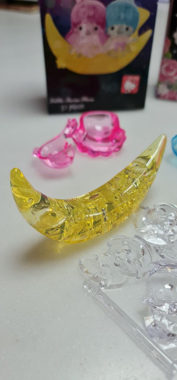 Sanrio 3D Crystal Puzzle Sanrio Little Twin Stars on Moon has 51 jigsaw puzzle pieces.